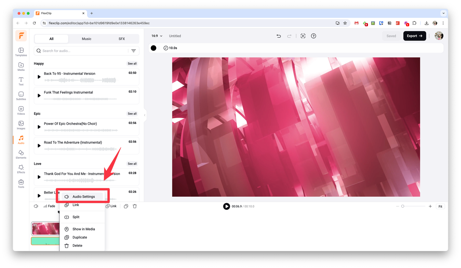 Бесплатный онлайн-видеоредактор, который также подходит для создания уникальных слайд-шоу. Есть большая библиотека картинок, видео и музыки. И есть большой выбор шаблонов. Также вы можете легко добавлять различные эффекты простым перетаскиванием.