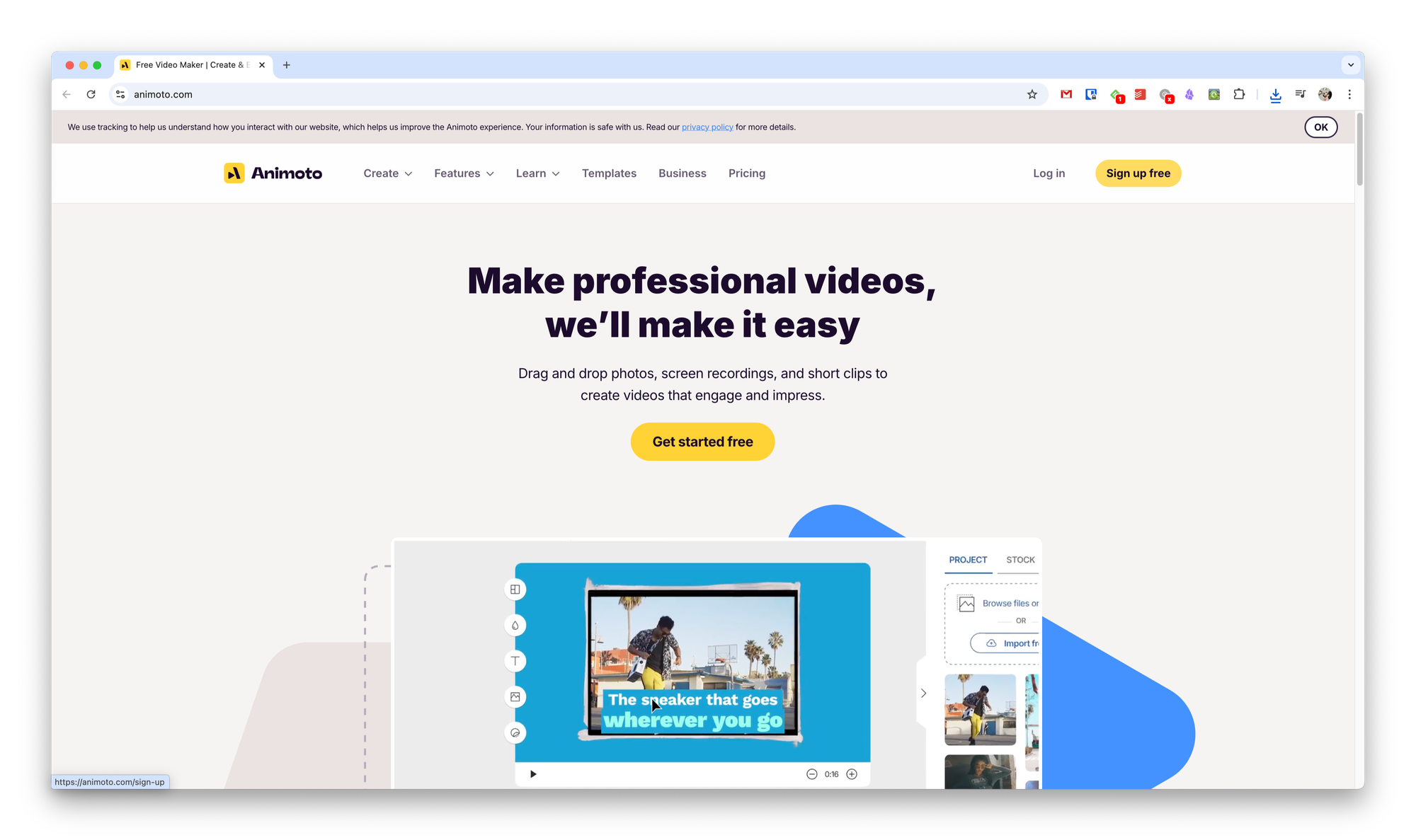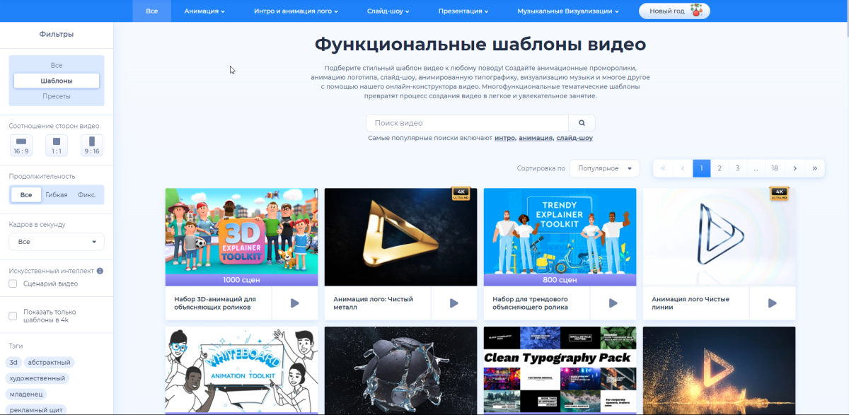 Веб-сервис для создания всяких разных промо-штук: роликов, слайд-шоу, анимашек, фото и пр. Во время работы над слайд-шоу вы сможете обращаться к набору готовых шаблонов или библиотеке стоковых картинок и видео. Также есть возможность настраивать текст и добавлять субтитры, логотип или ватермарку.