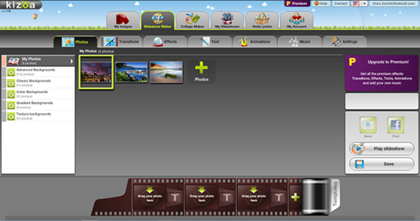 Тоже подходит для создания качественных слайд-шоу онлайн. Можно делать простые и коротенькие слайд-шоу (длительностью не более 3-х минут) или заплатить за подписку и создавать более серьёзное слайд-шоу для бизнеса.