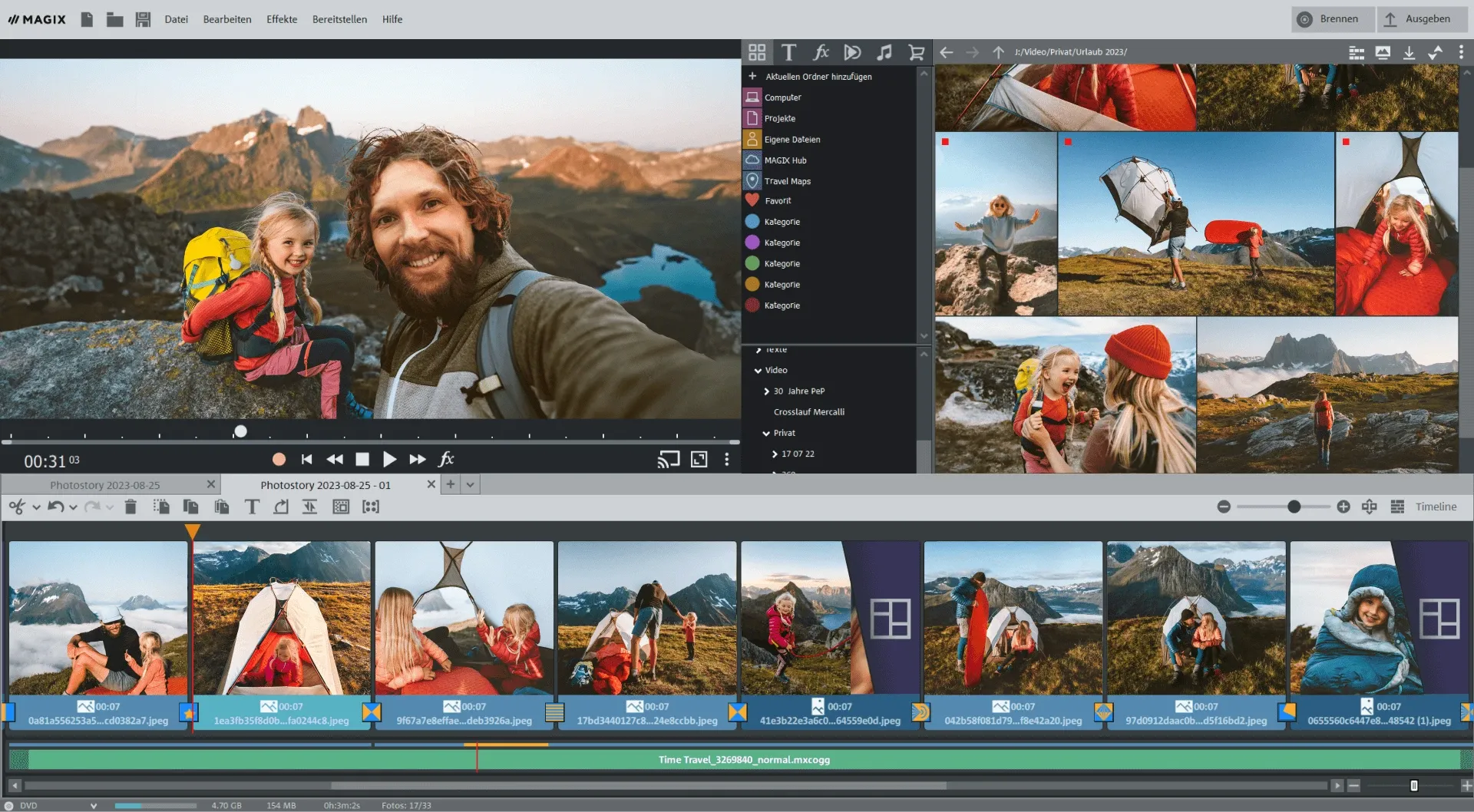 Хорошая утилита для Windows и macOS, которая предлагает кучу готовых шаблонов, визуальных и звуковых эффектов, переходов, фильтров и многого другого, чтобы вы могли делать красивейшие слайд-шоу.