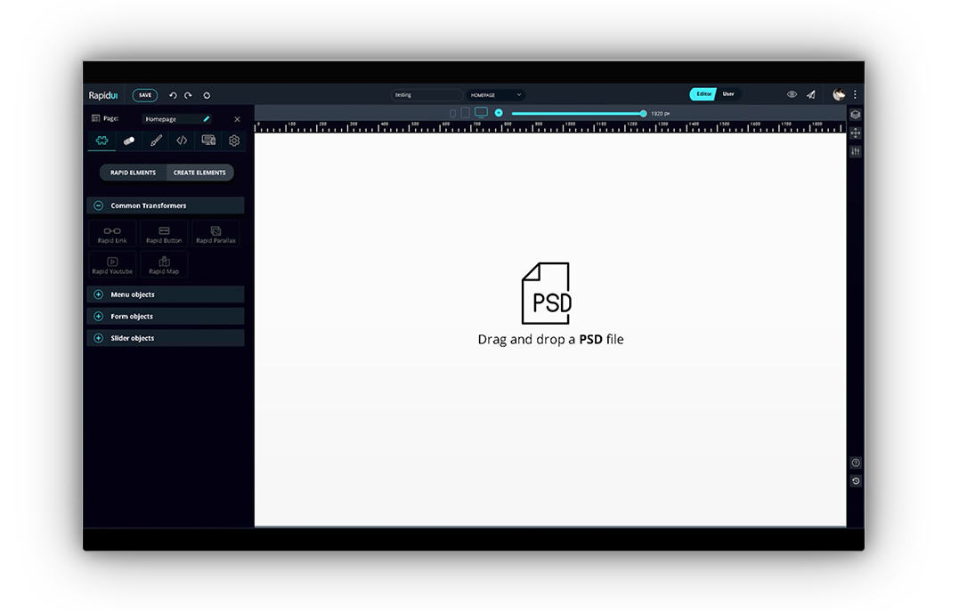 Преобразует файл Photoshop в полноценный интерфейс сайта (при этом даже не понадобится умение кодить). Просто перетаскиваете файл PSD в окно программы, и через несколько минут получаете HTML и CSS файл.