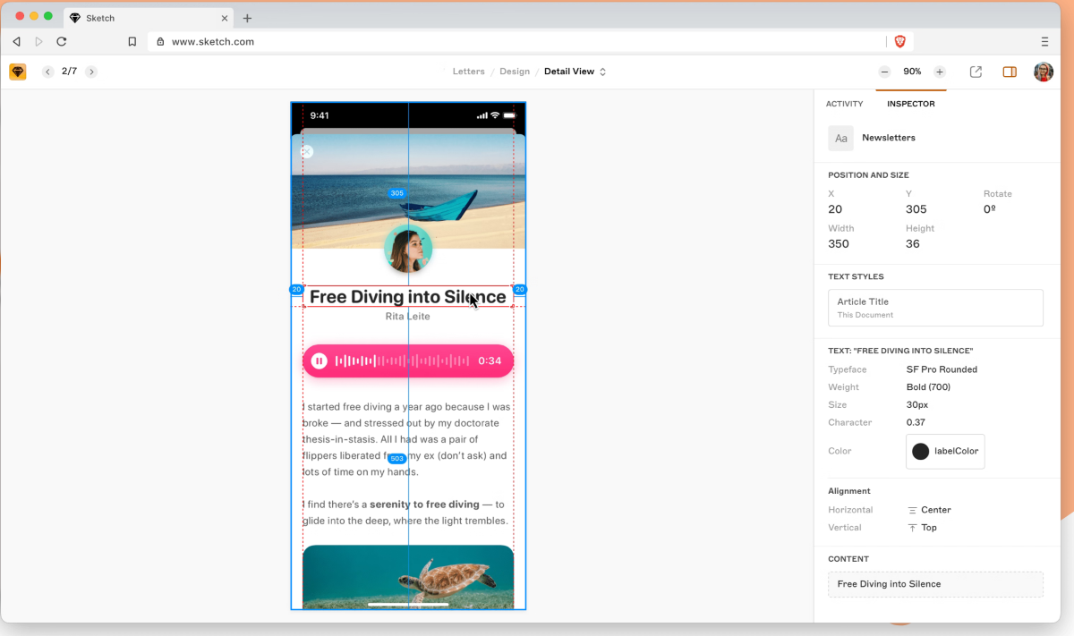 Позволяет дизайнерам и инженерам совместно трудиться над проектом. С его помощью можно легко делать интерактивные и анимированные прототипы. Можно добавлять свои работы из Sketch, XD и PS. Генерировать спецификации, ассеты и даже куски кода и обмениваться ими с коллегами.