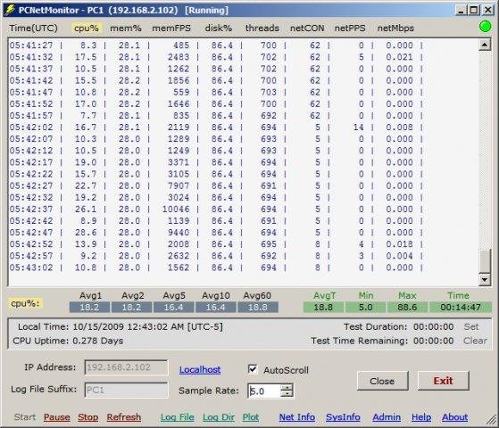 Помимо загрузки процессора, данное ПО также отображает загрузку оперативной памяти и сети. Все данные отображаются в довольно удобном интерфейсе и обновляются через определённый промежуток времени. Вы можете задать временной интервал обновления данных о производительности ЦП в журнале. Также здесь можно посмотреть среднюю производительность процессора за последние 1, 2, 5, 10 и 60 минут.