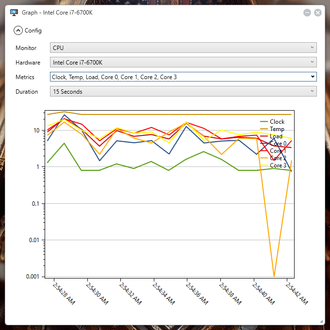 При желании параметры ПО можно изменить. Вы можете выбрать тип графика: гистограмма или линейный график. Также можно изменить процент калибровки, интервал обновления графика, интервал обновления загрузки ЦП и т.д.