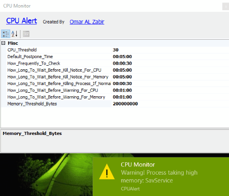 Это простая и бесплатная программа, которая запускается с панели задач Windows. Это настраиваемый инструмент, который начинает мигать или показывает предупреждение, когда загрузка процессора достигает заданного порогового значения.