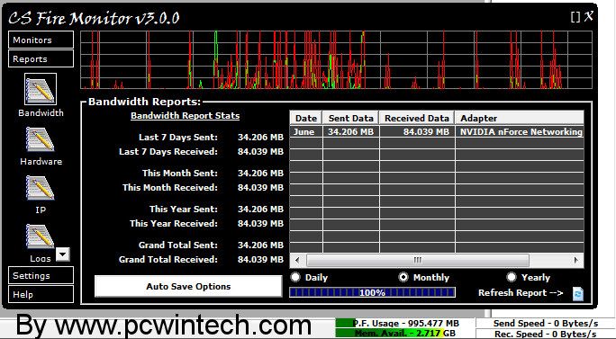 В разделах с параметрами ширины полосы, состояния дисков и аппаратного оборудования располагается соответствующие данные. На базе сохранённой статистики использования ЦП можно создавать журнал отчётов.