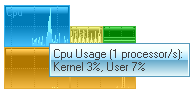 Простое ПО для мониторинга загрузки ЦП, которое находится на панели задач компьютера и отображает загрузку процессора. Программа отображает загрузку ЦП только в формате крошечного графика. Количество столбцов зависит от количества ядер процессора. Каждый из столбцов показывает загрузку одного ядра.
