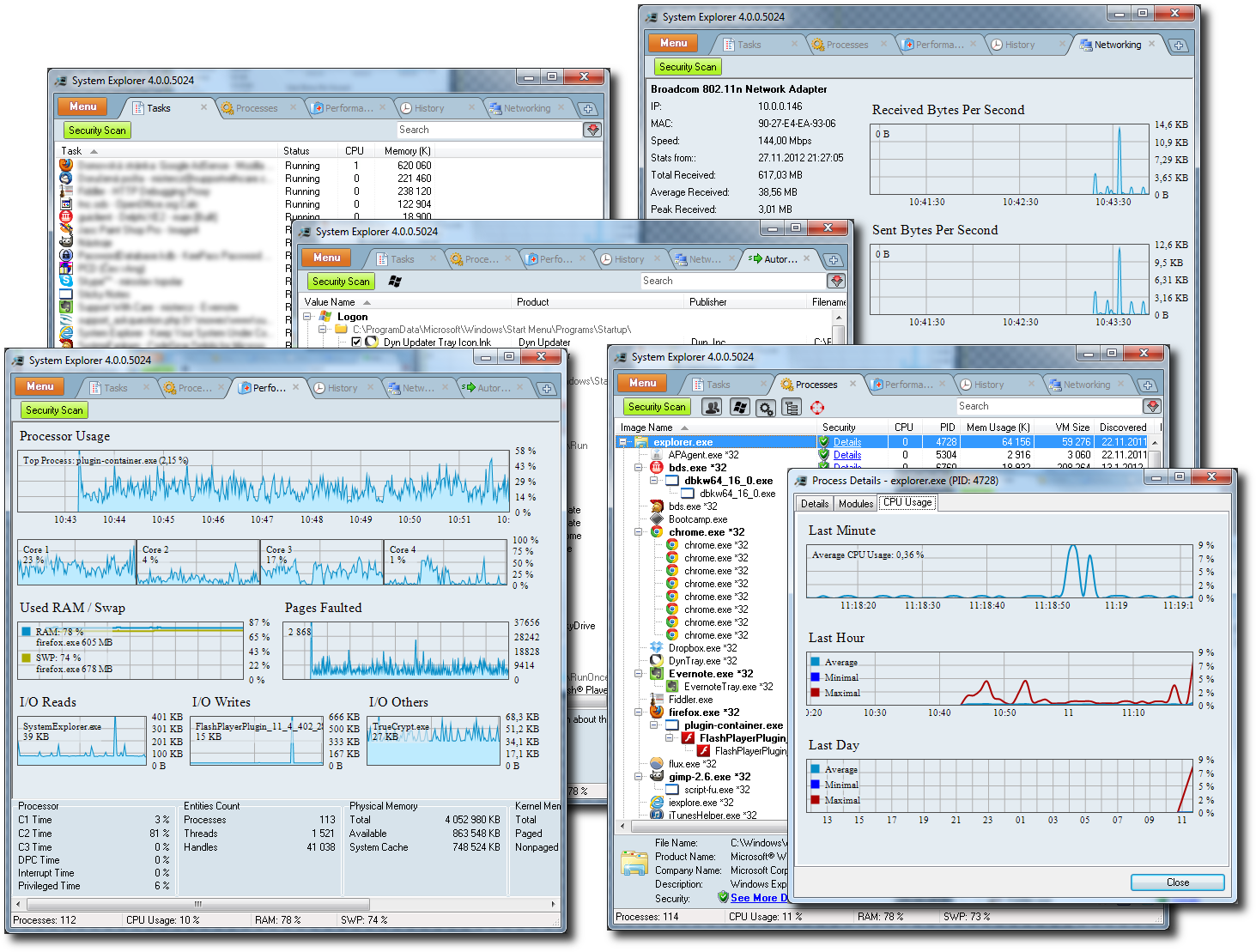 Кроме того, данное ПО позволяет отслеживать ещё множество показателей состояния компьютера. Так вы можете отслеживать задачи, процессы, сетевую активность, службы, драйверы и т.д. Также здесь можно найти системные утилиты, такие как инструмент для удаления программ, менеджер автозапуска, сканер безопасности и т.д.