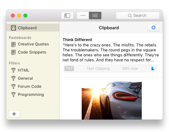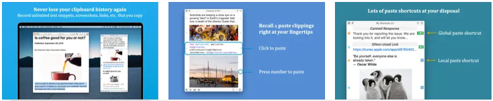 Сразу скажу, что у приложения есть версия для iPhone, но оно всё же доступно по подписке. В десктопной версии вы найдёте практически любые фишки, которые ожидаете от подобного приложения: бесконечная история копирования, сохранение файлов, удобные горячие клавиши. Кроме того, можно вставлять изображения в нужном формате, обрезать текст и многое другое.