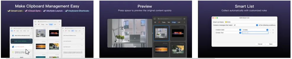 Этот менеджер буфера обмена доступен на macOS, iOS и iPadOS. Кроме своего естественного предназначения оно может составлять умные списки из скопированных данных по заранее заданным параметрам.