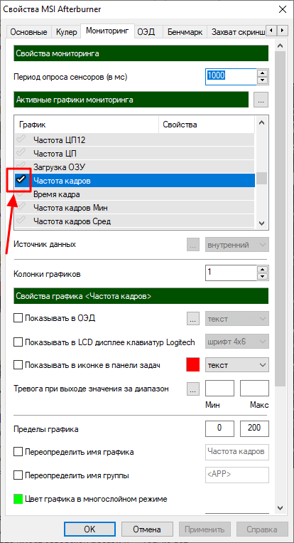 - Поставьте галочку напротив пунктов Частота кадров и Показывать на экране.