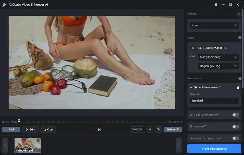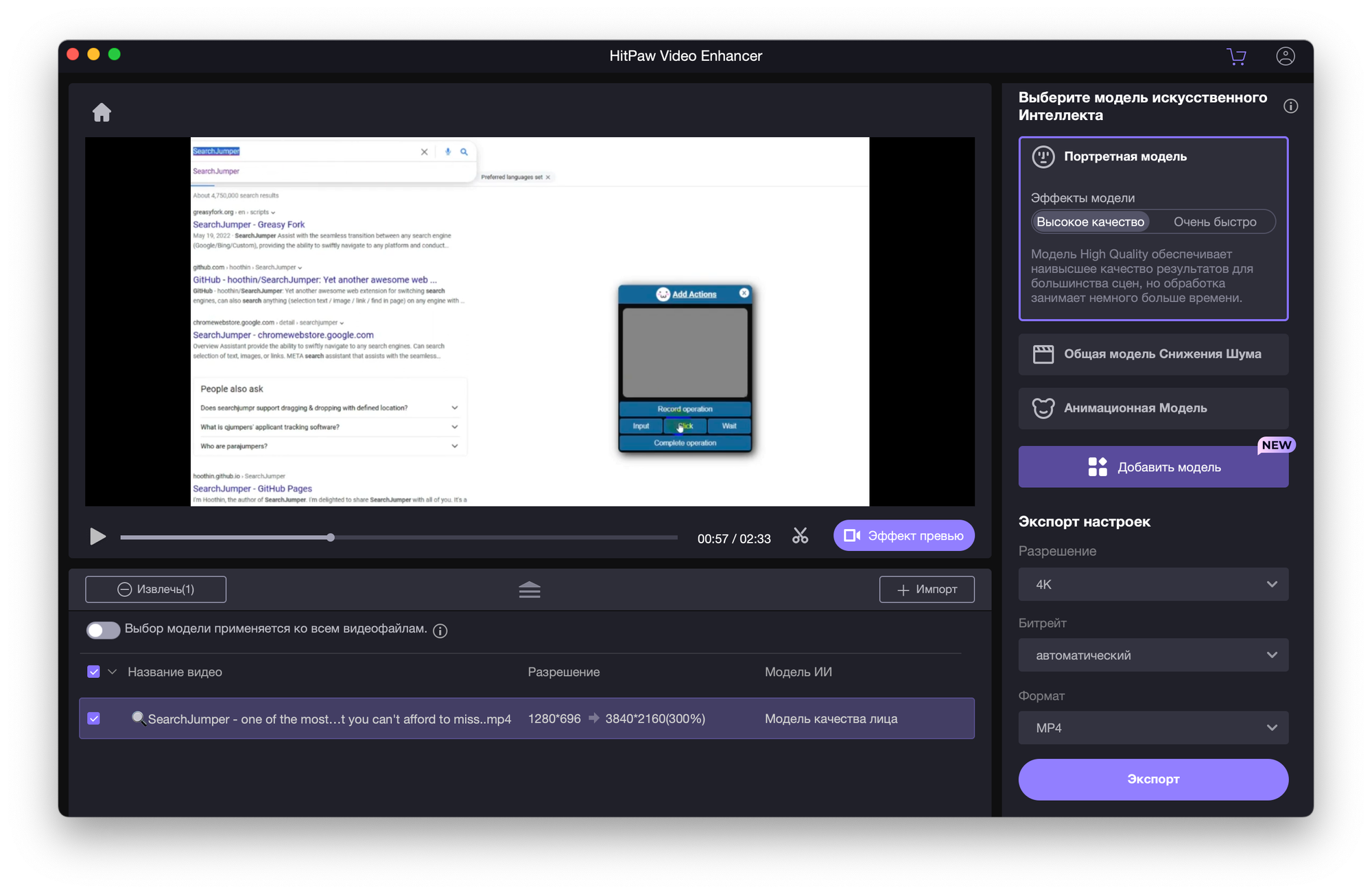 Ещё одна программа для улучшения качества видеозаписей с ИИ. С её помощью можно превратить чёрно-белое видео в цветное, убрать шумы, сделать его более чётким, апскейлить до 4K.
