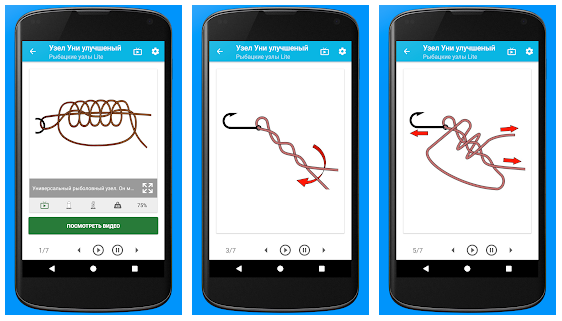 Полезное и простое приложение с видеоинструкциями по вязанию рыболовных узлов. Так вы узнаете, какие узлы подходят для того или иного типа лески, крючка, блесны, приманки и т.д.