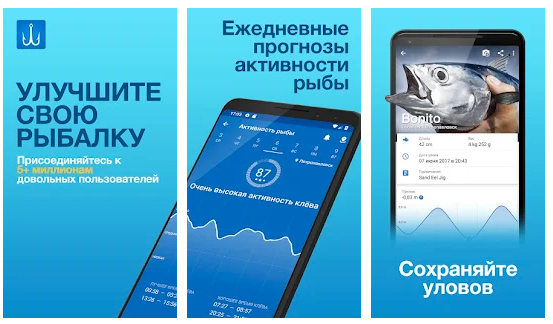Полностью бесплатное приложение для рыбалки с картой ближайших рыбных мест, прогнозом погоды, возможностью обмениваться опытом с другими рыбаками.