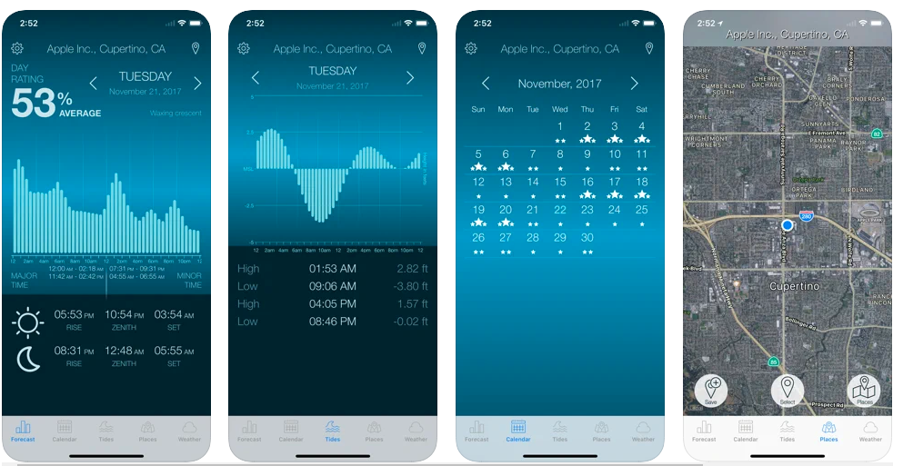 Подходит и для рыболовов, и для охотников. Приложение предоставляет информацию о погоде, приливах/отливах и времени, когда рыба наиболее активна.
