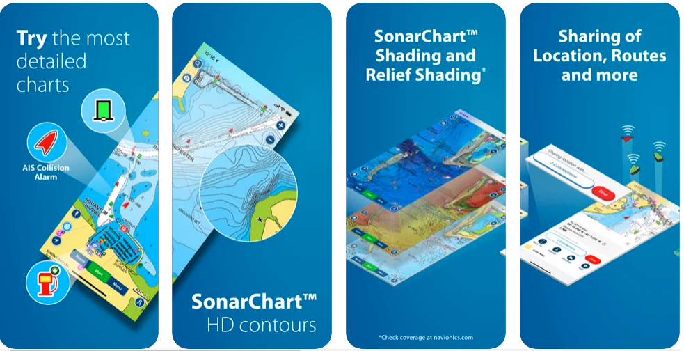 Приложение предоставляет инфу о погодных условиях и приливах/отливах, детализированные морские карты и записи, оставленные другими пользователями.