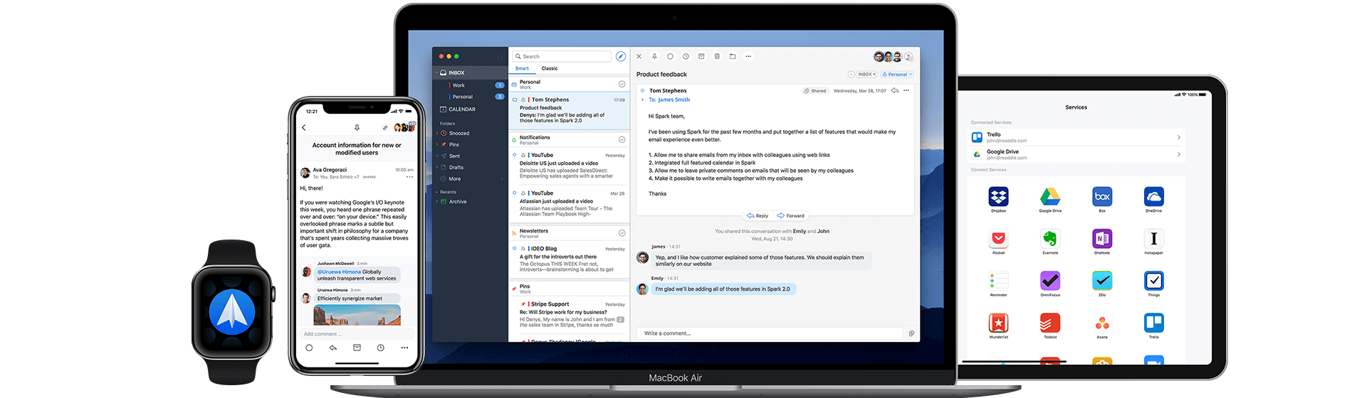 На мой взгляд, самая уникальная фишка Spark в том, что он позволяет работать с письмами вместе с другими людьми онлайн.