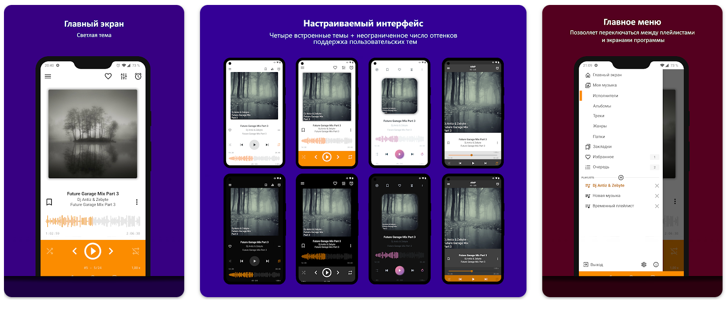 Ещё один достойный вариант для Android Auto. Есть AM3D — улучшатор качества звука, несколько аудиоэффектов и эквалайзер с различными пресетами. Ну и стандартный набор функций (поддержка плейлистов, плавный переход треков, управление скоростью воспроизведения и т.д.) тоже на месте.
