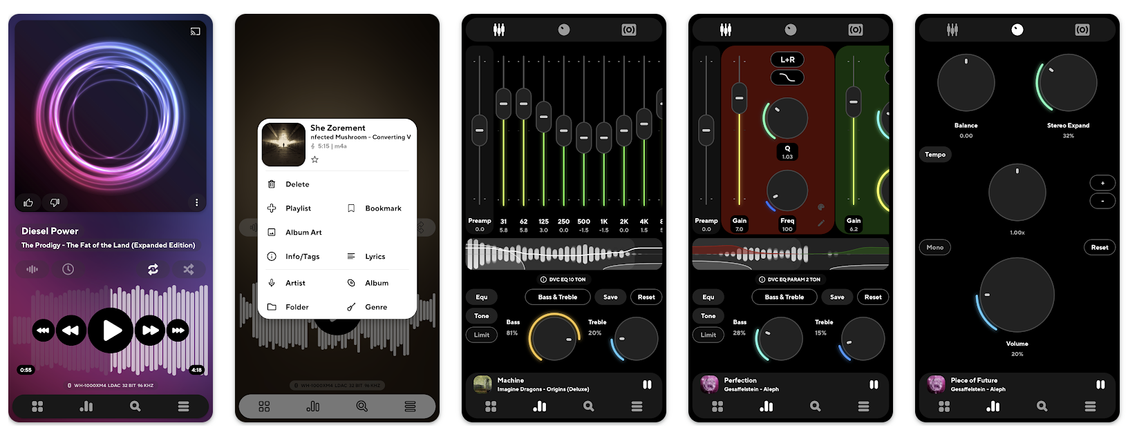 Также здесь есть 29-полосный эквалайзер, возможность управлять скоростью воспроизведения (для подкастов и аудиокниг) и громкостью.