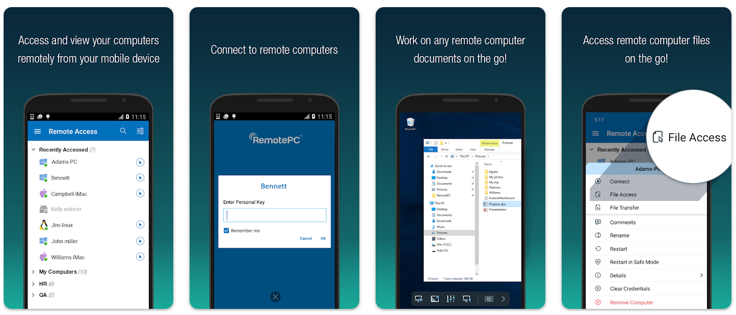 Простое в настройке и использовании решение, которое позволит вам удалённо открывать документы, передавать файлы и делать другие вещи на компе с мобилки. Хотя программой можно пользоваться бесплатно, также есть платная версия для бизнеса.