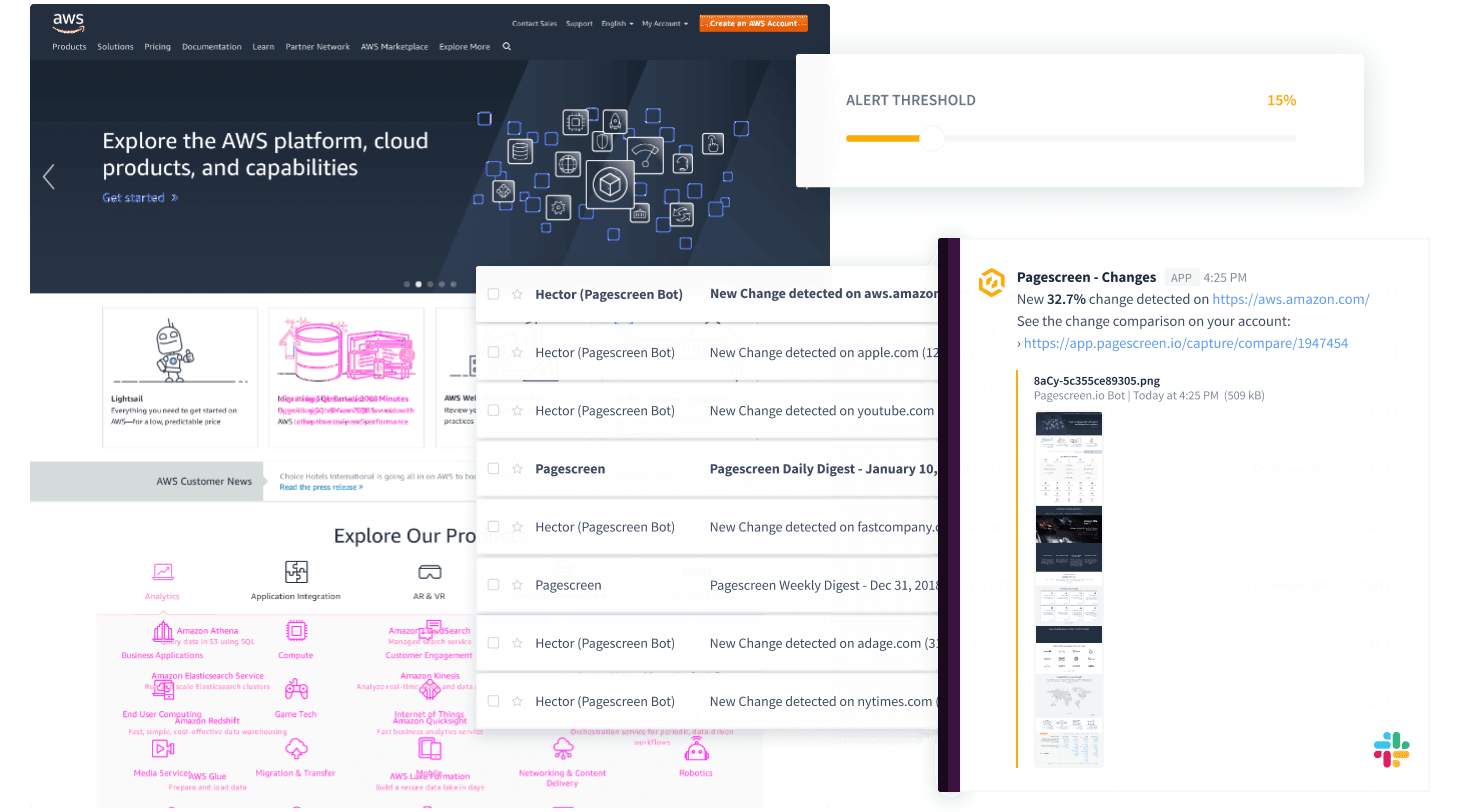 Хороший выбор для тех, кто хочет следить за изменениями на сайте с помощью скриншотов. Как и в других сервисах, вы можете мониторить сразу по несколько страниц, выбрать конкретную область страницы и тонко настроить, когда и во сколько нужно делать скриншоты.
