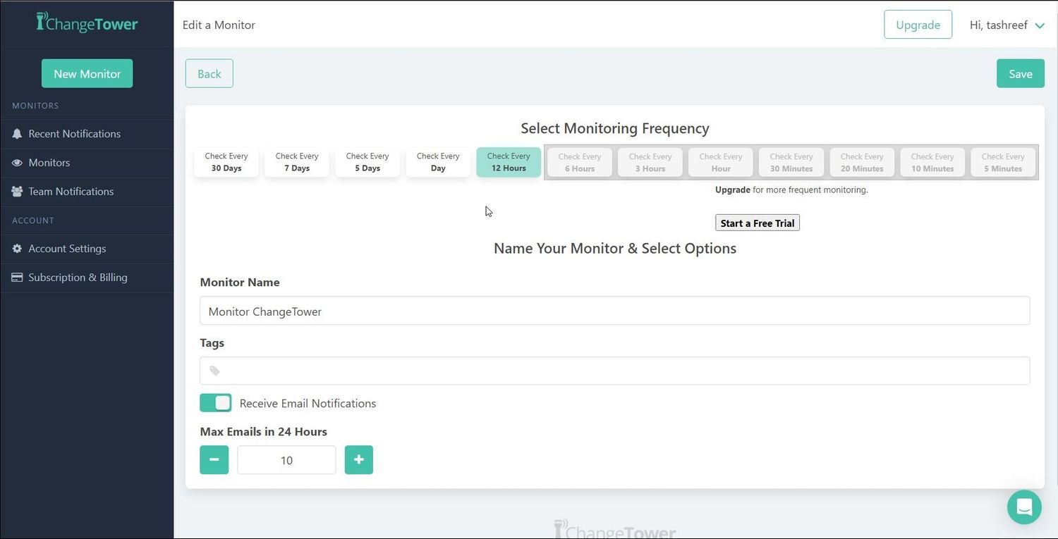 Также можно выбрать частоту мониторинга (например, каждые пять минут, ежедневно или раз в месяц). И можно настроить, когда сервис должен присылать вам уведомления, — сразу при появлении малейших изменений или только при значительных изменениях.