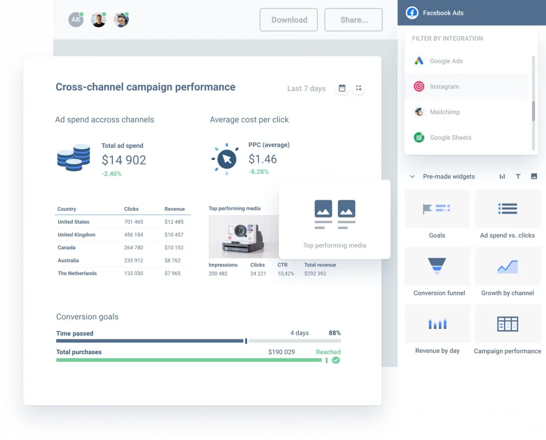 - Помогает расширить охват рынка, предоставляя подробные отчёты по аудитории.