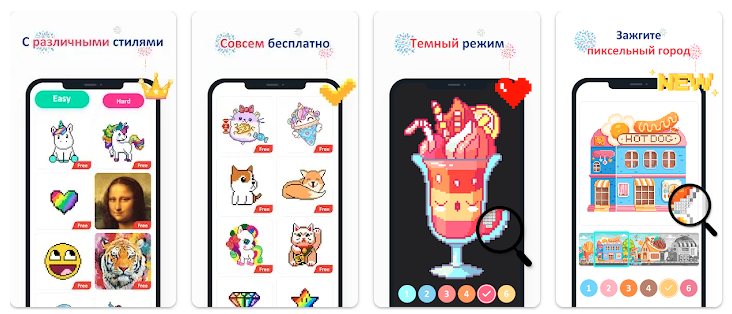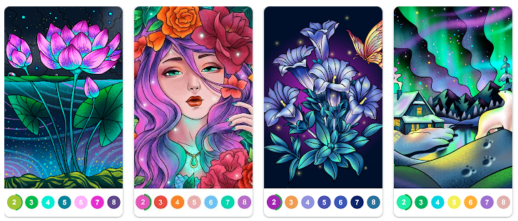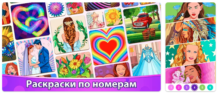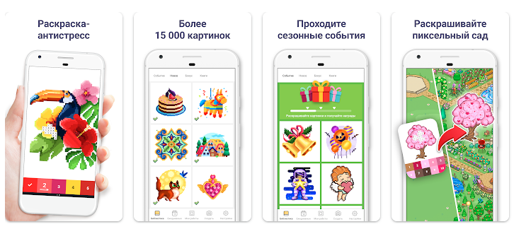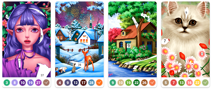 Ещё одно хорошее приложение-разукрашка по номерам, которое подойдёт тем, кто вообще не знает, как это делается. Есть понятные подсказки и куча бесплатных картинок на любой вкус.