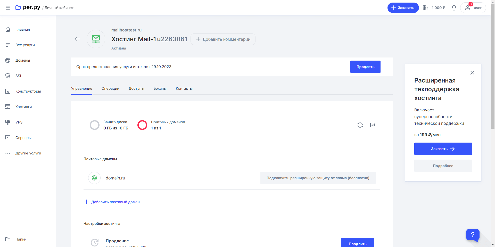 - Безлимит на почтовые ящики.