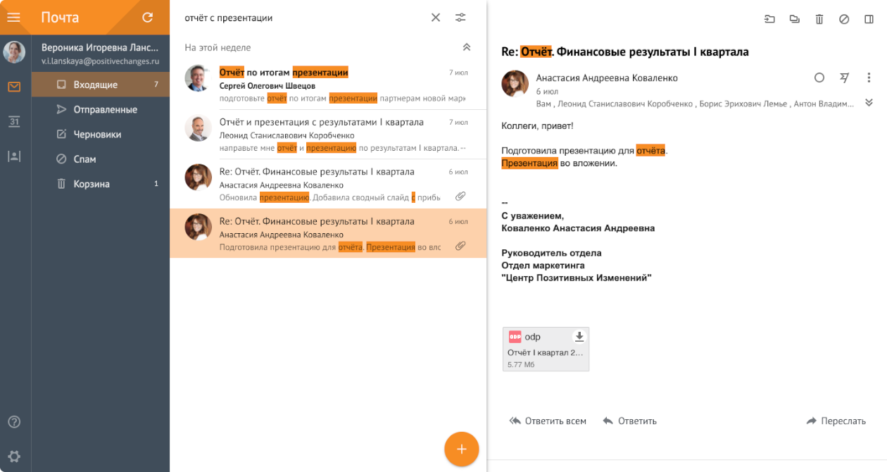 - Удобная организация входящей почты.