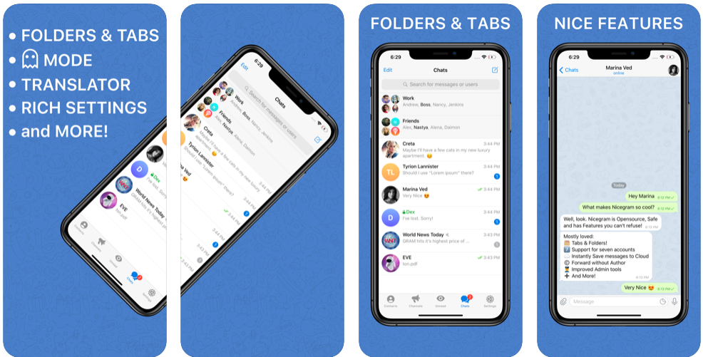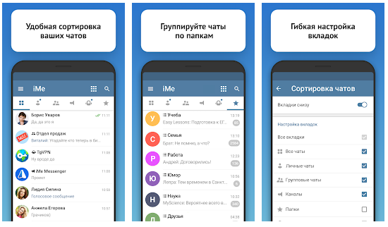 - Удобный список чатов, возможность распределения по папкам.