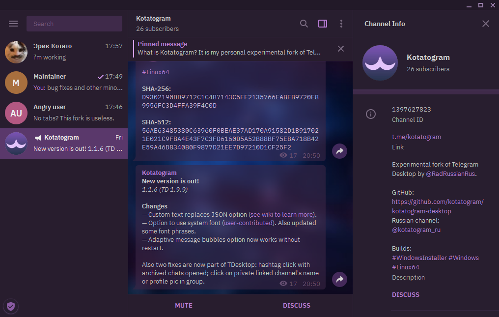 Kotatogram (Windows, Linux)