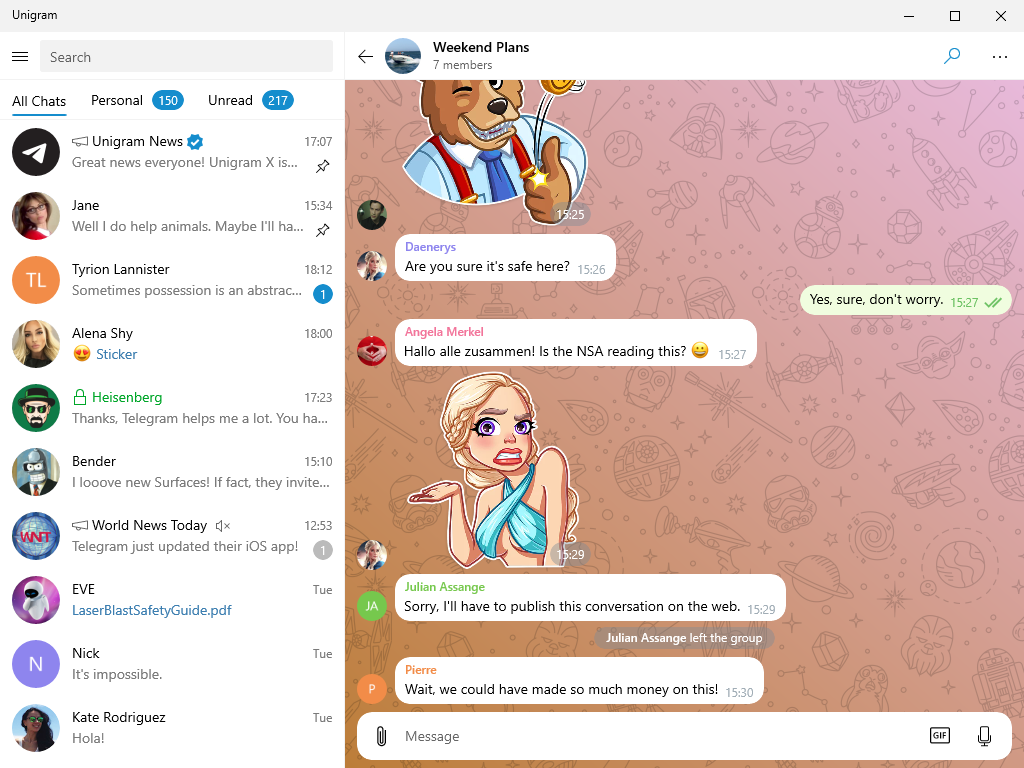 - Использование стикеров из Телеграм.