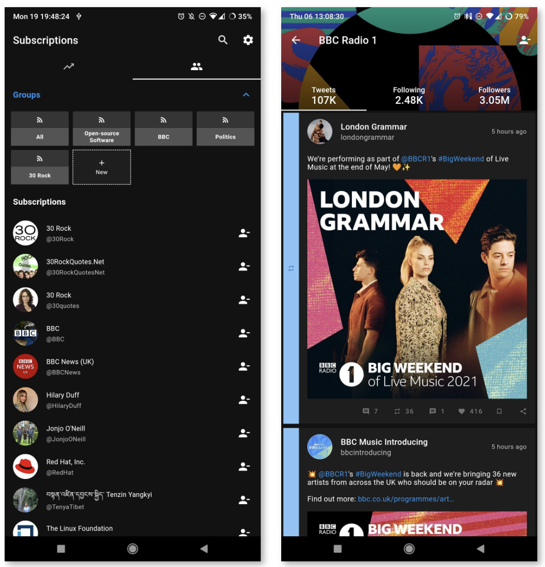 Тем, кто выбирает альтернативный клиент Twitter, главной функцией которого является сохранение конфиденциальности, стоит обратить внимание на Fritter. Это альтернативный клиент с открытым кодом, который создавался с акцентом на прозрачность. Ваши данные полностью под контролем, а действия или информация, хранящиеся в приложении, не отслеживаются и не передаются разработчикам, а остаются на локальном устройстве. Чтобы пользоваться приложением, вам не придётся заводить аккаунт в Twitter, что позволяет «чирикать» в безопасном и анонимном режиме.