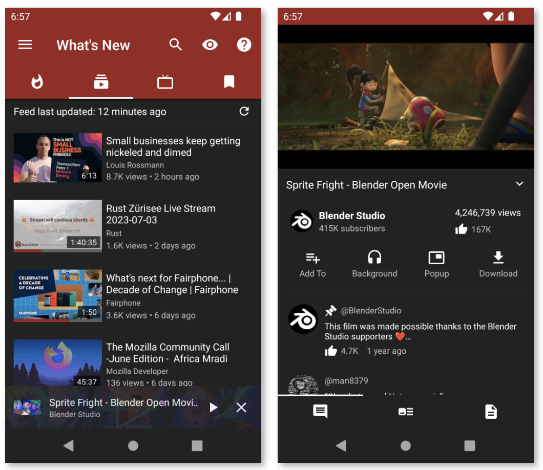 Прекрасная альтернатива YouTube Vanced с открытым исходным кодом, в которой есть все необходимые функции и особое внимание уделяется вопросам конфиденциальности. Имеет лицензию GPL 3.0, поэтому вы можете легко загружать и использовать его без ограничений. Приложение не поддерживает аккаунты YouTube, но импорт подписок значительно упрощает работу.