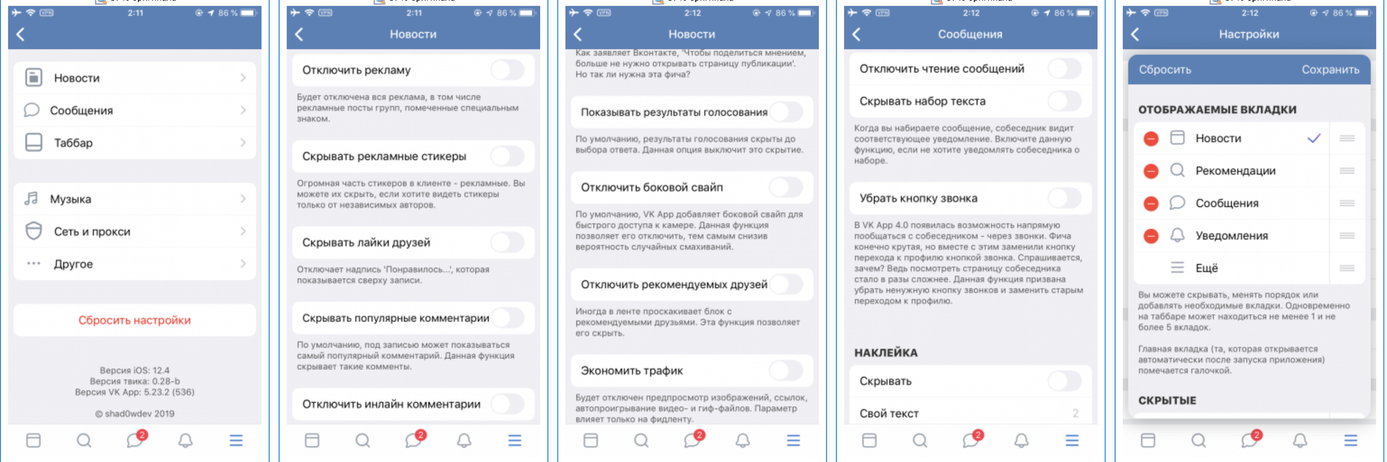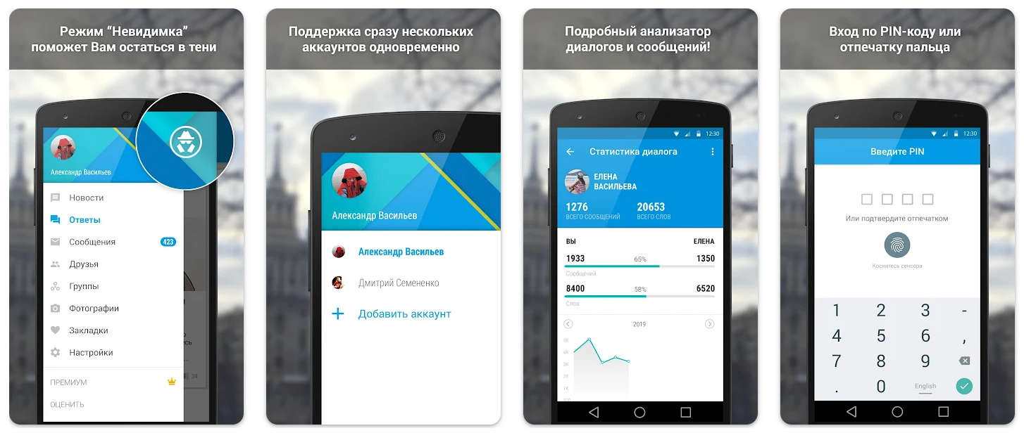 Популярная среди пользователей утилита, которая предоставляет неограниченный доступ к музыке. Здесь же можно изменять дизайн, применять всевозможные темы и устанавливать «невидимые» и «нечитающие» режимы. Можно также отключить изображение карандаша в момент набора сообщения. Из новостной ленты пользователь может убрать рекламу.