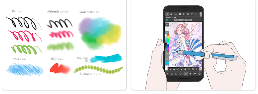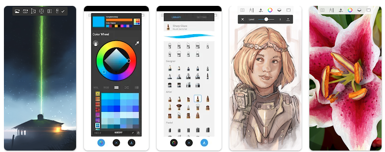 Крутое решение для рисования от известной компании. Здесь есть всё необходимое: настраиваемые кисти разных размеров, работа со слоями, возможность увеличить масштаб холста до 64 раз для прорисовки мелких деталей, и многое другое.