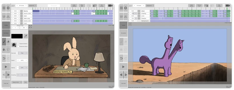 А с помощью этого приложения вы сможете создавать полноценные анимации или даже целый мультфильм. Есть опции для настройки частоты кадров и разрешения, поддержка импорта видео и аудио. Готовую работу можно экспортировать в виде GIF, видео QuickTime либо как отдельные изображения.