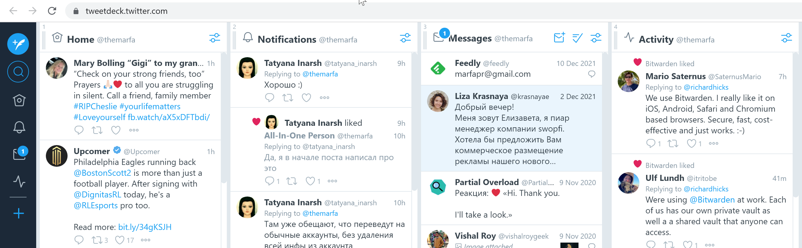 Инструмент от самого Twitter, который помогает в планировании и отслеживании публикаций. Есть возможность удобно разбить контент по столбцам. А ещё вы сможете быстро находить нужное по ключевым словам или типу мультимедиа.