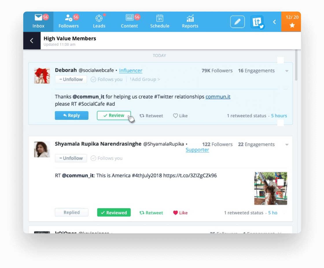 Инструмент, который будет собирать информацию обо всех ваших подписчиках, искать самых активных среди них и рассылать им благодарственные письма. Также он умеет курировать контент и расшаривать его. А ещё у вас будет доступ ко всем сообщениям из разных аккаунтов.