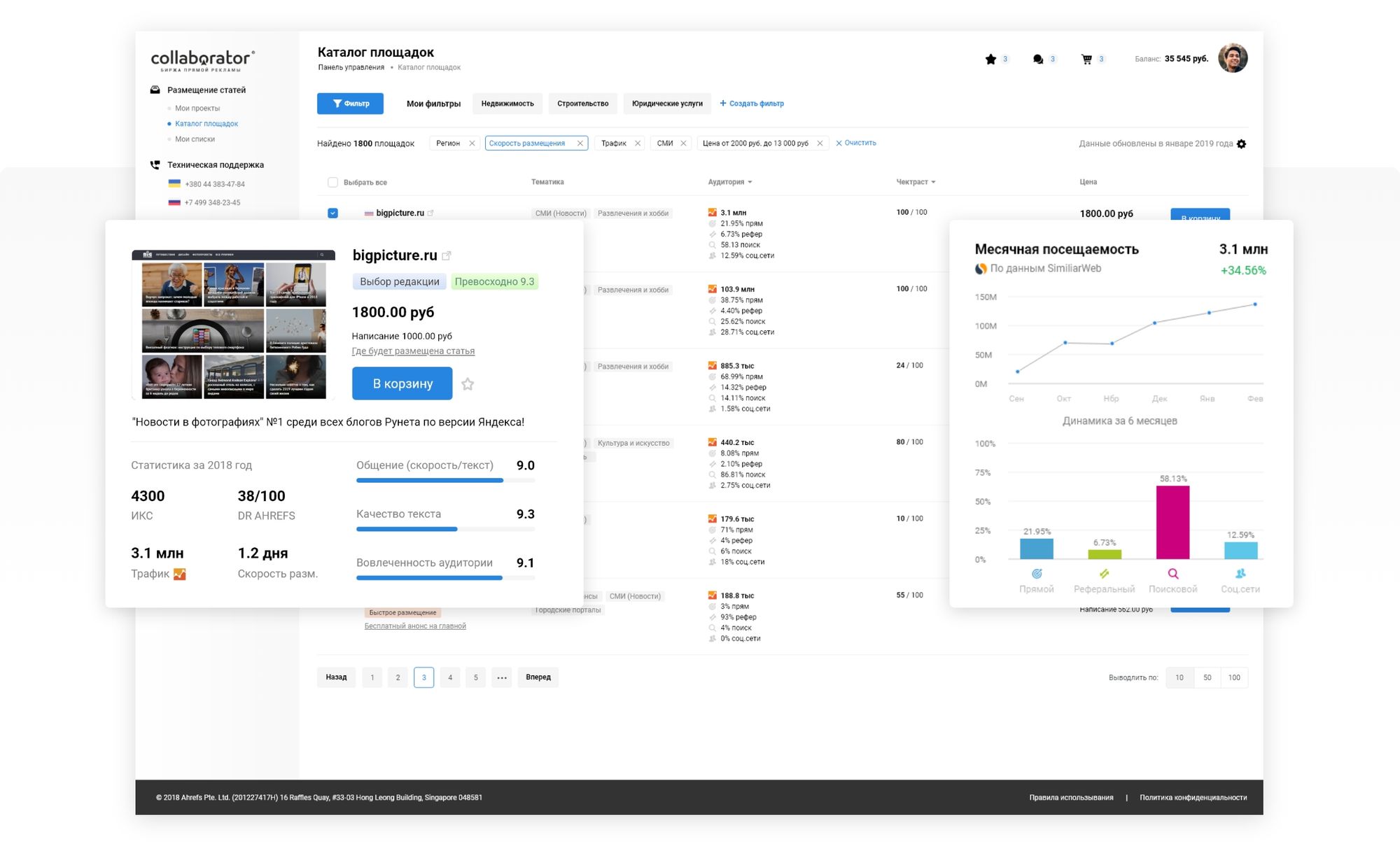 - Доступно для сотрудничества более 55 000 сайтов;