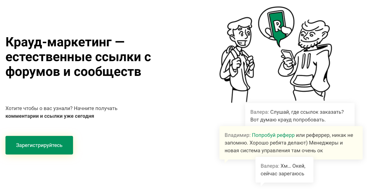 Крауд-маркетинг используется для того, чтобы клиент получил экспертную оценку относительно интересующего его продукта. Вместе с этим вам удаётся получить максимально приближённые к естественным ссылки.