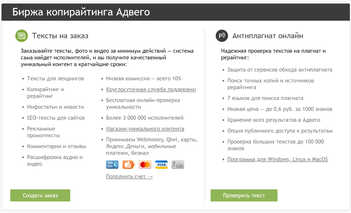 Это площадка, которая так же, как и предыдущая, была открыта в 2015 году. Предоставляет клиентам сотрудничество в 2 тарифных планах. Есть стандартный тариф и «Эксперт», который в дополнение к классическому набору услуг предлагает следующие: