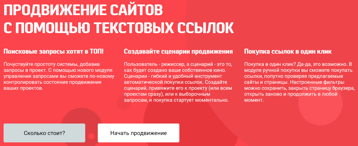 Биржа отличается тем, что предоставляет клиентам возможность выбрать один из вариантов размещения ссылок: