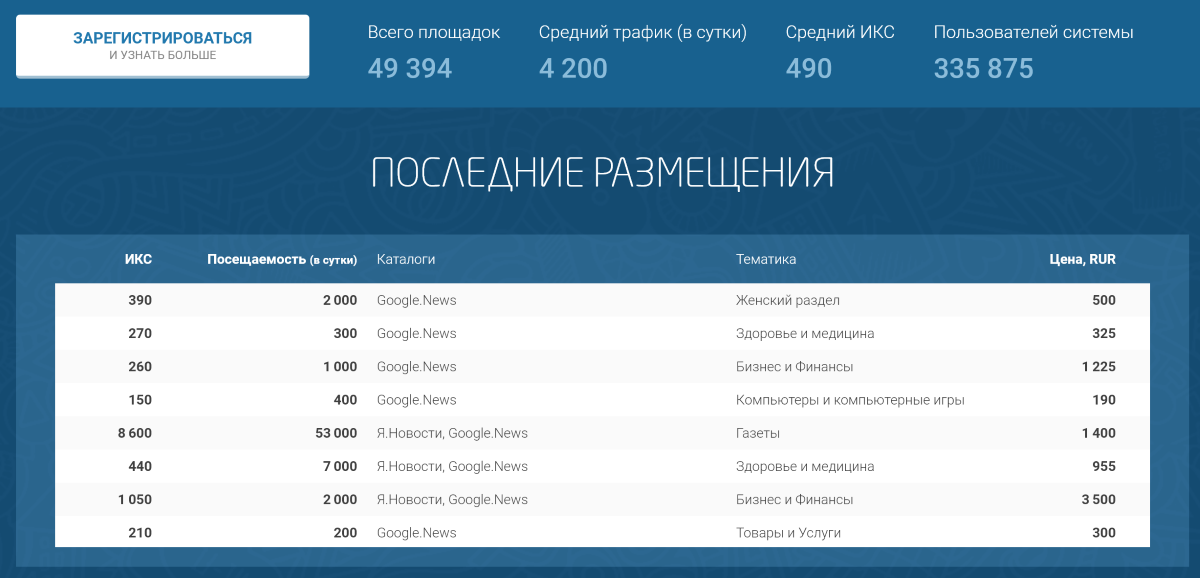 Ещё одна популярная биржа, которая появилась в 2014 году и предоставляет для своих клиентов фиксированную стоимость размещения ссылки.