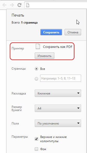 После чего вы можете открыть этот файл в браузере и через меню Печать выбрать Сохранить как pdf: