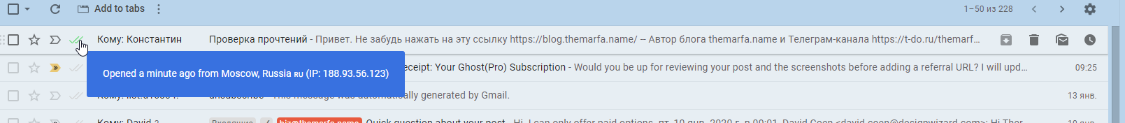 isOpened — бесплатное расширение для отслеживания прочтения писем и перехода по ссылкам в Gmail.