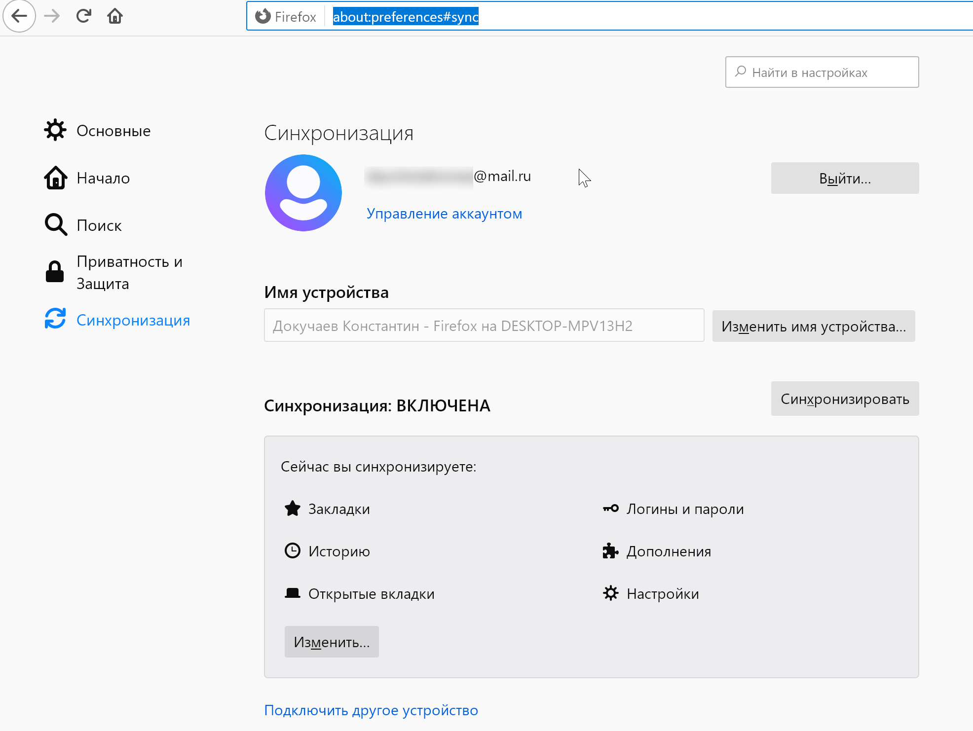 Синхронизация Firefox