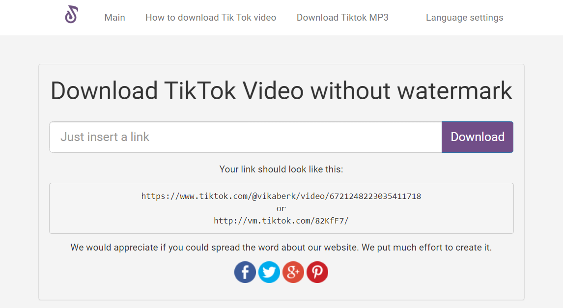 Tiktok Video Downloader скачивает видео из TikTok. Для этого достаточно просто скопировать ссылку на видео и вставить её на сайте.