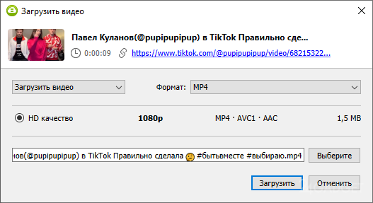 4K Video Downloader может выгружать видео в исходном качестве из популярных онлайн площадок, включая TikTok. Можно отдельно извлечь и скачать только звуковую дорожку.